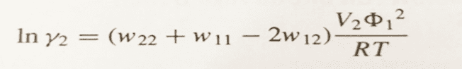- The activity coefficient term of the solubility equations, however, was shown by Scatchard and by Hildebrand and Wood19 to be proportional also to the volume of the solute, considered as a supercooled liquid, and to the fraction of the total volume occupied by the solvent. The logarithm of the activity coefficient is given by the more elaborate expression